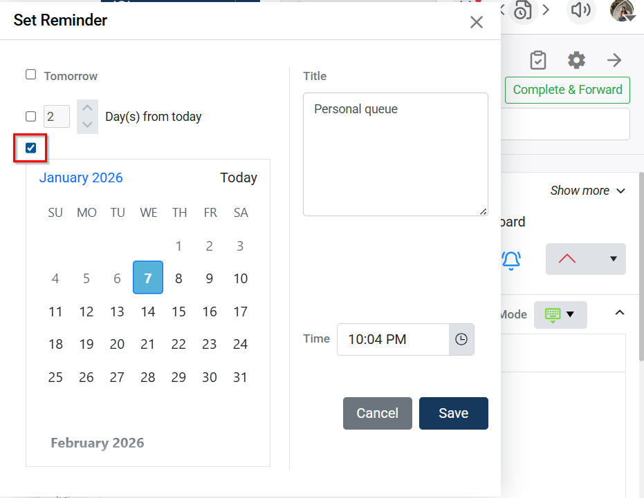 - This opens a calendar, allowing you to schedule the reminder for future dates, as shown below: