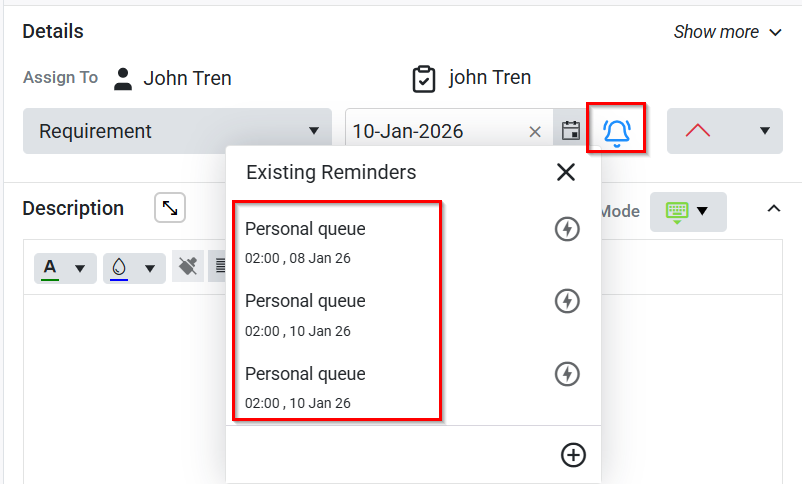 - Newly added reminder will appear in the reminder pop-up window, as shown below in the image: