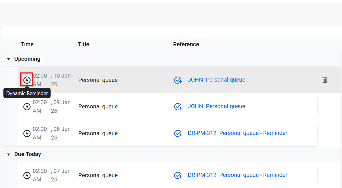 - A dynamic reminder can be set for tasks that have not yet passed their due date.