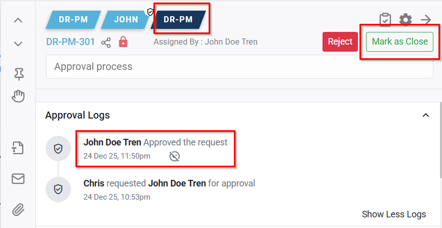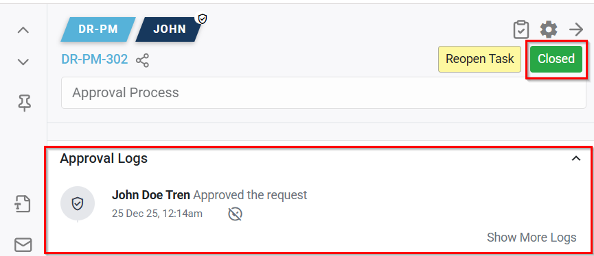 Once you have completed your review and taken the appropriate action, the task will automatically move to the next approver in the sequence (if applicable) to finally Mark as Close, shown below: