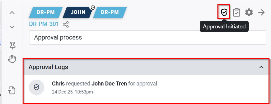 You can view approval history in a grid format, along with an approval status icon that appears in the top right corner of the task sidebar for easy reference, shown below: