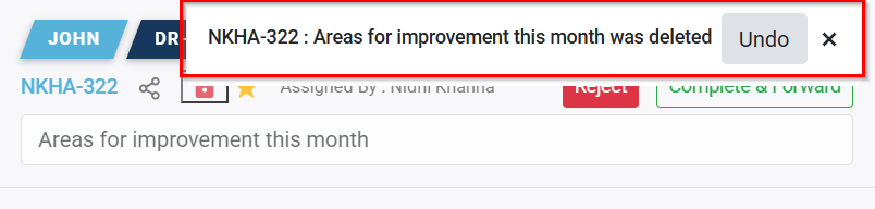 A task can be deleted only by its creator and only while it is currently assigned to them. If the task has moved to the next team—where you are not a member—or to another user’s board, it cannot be deleted.