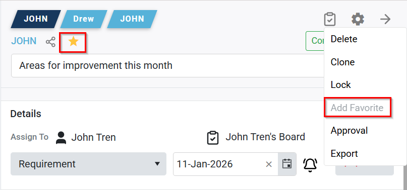 - To add a task as a Favorite, click the task settings icon and select “Add Favorite.”