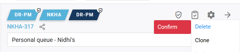 - To clone an existing task, open the task, click the settings icon, and choose “Clone.” The cloned task will be assigned to the same team, with you as the assignee, option shown below: