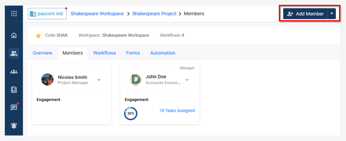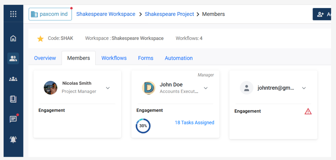 Easily expand your team with the “Add Team Members” feature, allowing you to search, add, and adjust roles as needed.