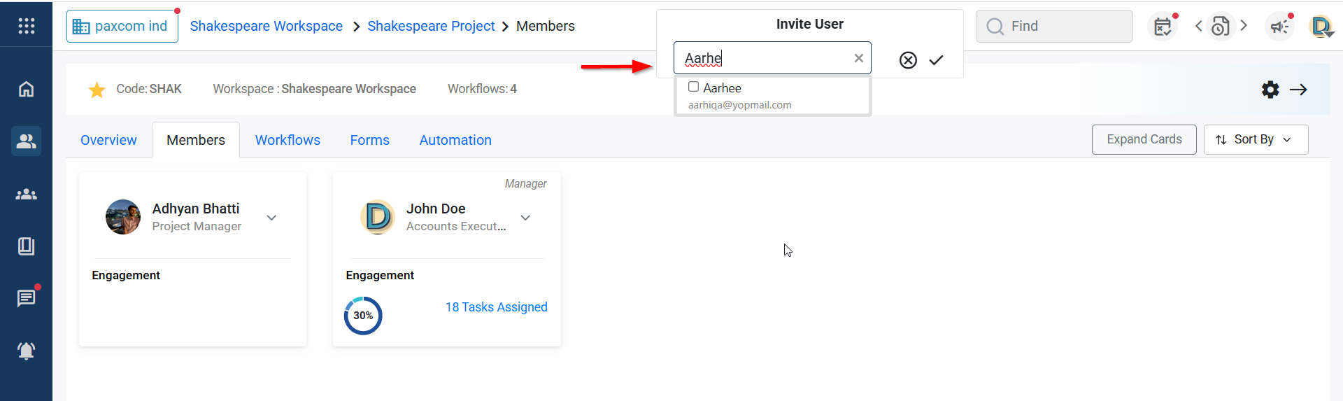 - After adding a new member, a red triangle appears, indicating that admin approval is required for onboarding if the user is non-existing member
