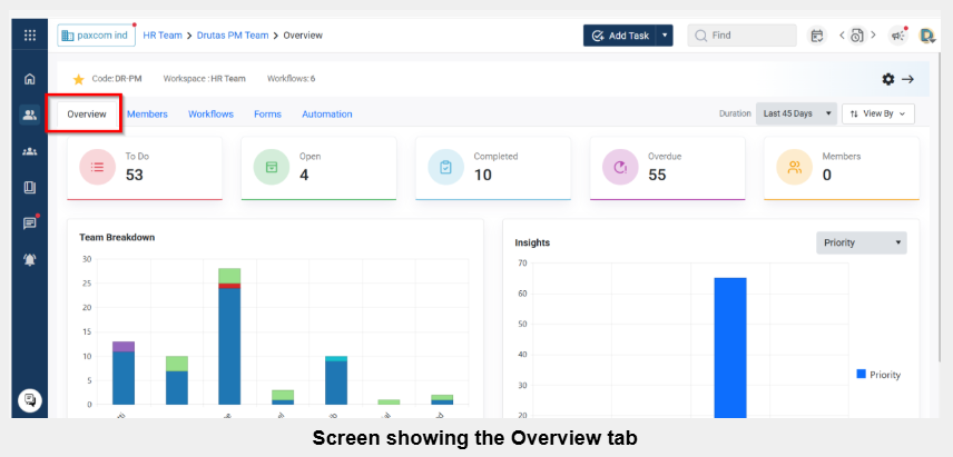 A new Overview tab has been added to Team Settings, offering visual insights into team progress. The tab presents key metrics based on task durations, helping users quickly analyze team performance and workflow efficiency. This enhancement provides a clear snapshot of overall team activity at a glance.